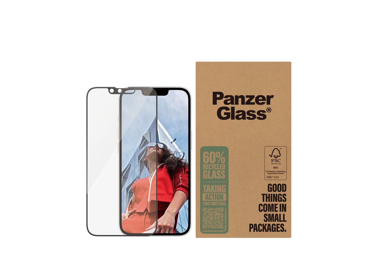 Mere genanvendelse. Bedre beskyttelse. Længere telefonlevetid. Med den her skærmbeskytter fra PanzerGlass får du det hele. Skærmbeskytteren er lavet af 60 % genanvendt materiale, er 3 x mere ridsefast end tidligere modeller og holder både ridser, revner, slag og stød på sikker afstand af din skærm – vel at mærke uden at det går ud over telefonens funktionalitet og design. Glasset har endda en smudsafvisende belægning, der reducerer fedtfingre og snavs på skærmen. Skærmbeskytteren kan forlænge levetiden på din telefon, så du måske en dag kan give den videre til en anden, som vil elske den lige så højt som dig. Det er ren telefonkærlighed. For jo længere vi kan holde vores enheder i live, jo længere kan vi vente med at producere nye enheder, som belaster miljøet. Og nu vi taler om miljøet, bruger den her skærmbeskyttelse 33 %* mindre papiremballage end tidligere modeller og leveres i en genanvendelig FSC -mærket æske.Følg trin-for-trin-guiden eller scan QR-koden til sådan-installerer-du-videoen, der gør installationen så legende let. Når først skærmbeskytteren sidder på telefonen, er det slut med at frygte synet af din skærm med kurs mod asfalten. Det kommer muligvis aldrig til at ske, men hvis det gør, vil du fortryde, at du ikke klikkede "Tilføj til kurv".Skærmbeskytteren har størrelsen "Ultra-Wide Fit". Det betyder, at den dækker fronten af din telefon, samtidig med at den giver dig en krystalklar skærmoplevelse og efterlader lidt plads langs kanterne til et cover. Vil du give din telefon 360-graders beskyttelse, kan du kombinere skærmbeskyttelsen med et PanzerGlass cover og en PanzerGlass PicturePerfect eller Hoops kameralinsebeskytter.*Beregnet af tredjepartslaboratorium ved at sammenligne vægten af den nye papiremballage introduceret i 2023 med vægten af den tidligere papiremballage introduceret i 2022 (CPRTC, rapportnummer ZSA20231301-0016).
