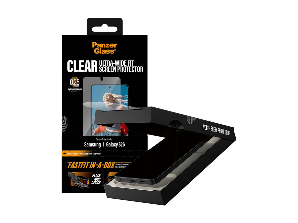 | Produktbeskrivelse | PanzerGlass - skærmbeskytter for mobiltelefon - ultra-bred pasform med FASTFIT IN-A-BOX |