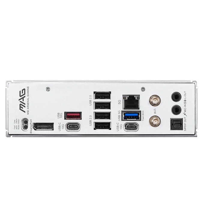 | Rear I/O | Clear CMOS Button, USB 10Gbps (Type-A), 4x USB 2.0, 5G LAN, Wi-Fi / Bluetooth antenna ports, 1x S/PDIF, 1x Headphone, 1x Microphone, DisplayPort, 2x USB 10Gbps (Type-C), 1x USB 5Gbps (Type-A) |