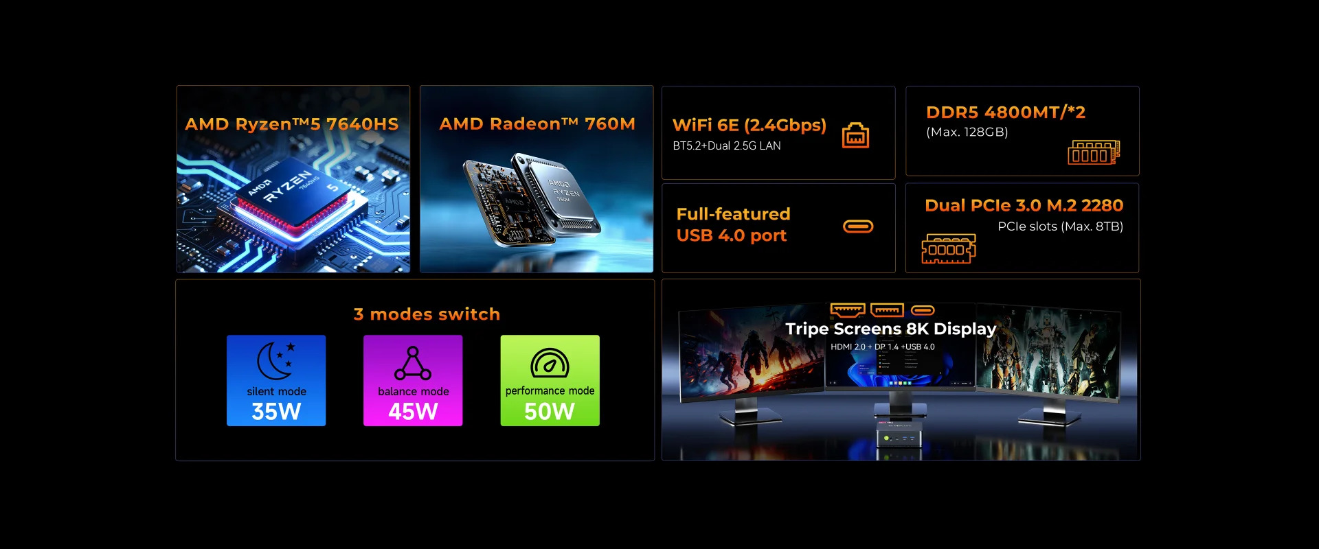 GMKtec M6 Ultra - Lille AMD Ryzen 5 - 7640HS / Op til 5.0 GHz - RAM 16 GB - SSD 512 GB - AMD Radeon 760M - HDMI, DisplayPort, USB4 - WiFI 6e, Bluetooth 5.2 - Win 11 Pro - skærm: ingen - tastatur: ingen