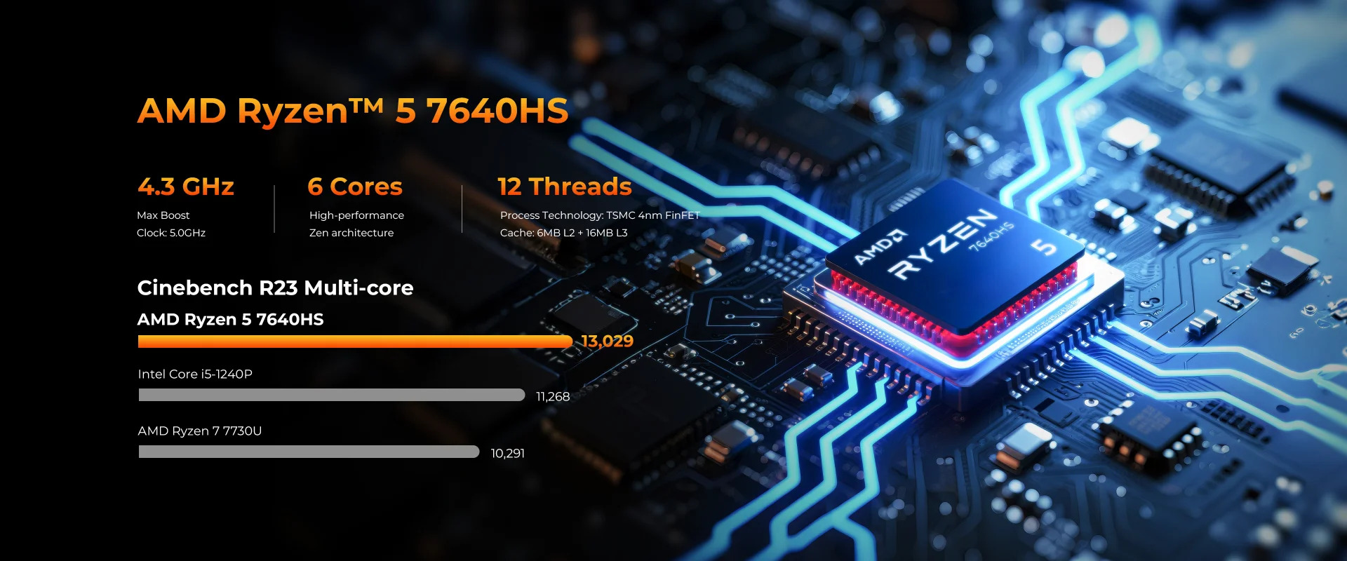Processor AMD Ryzen 5 7640HS / 4.3 GHz, op til 5.0 GHz / 16 MB Cache