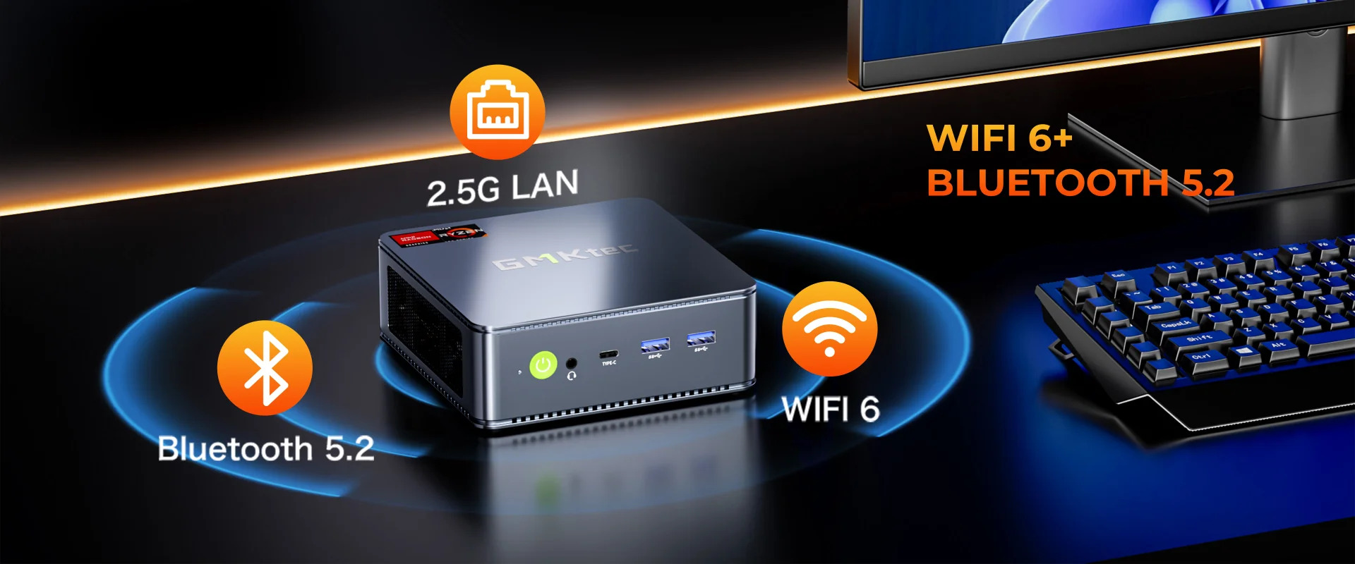 Netværk 2x 2.5 Gigabit Ethernet, IEEE 802.11b, IEEE 802.11a, IEEE 802.11g, IEEE 802.11n, IEEE 802.11ac, 802.11axe, Bluetooth 5.2