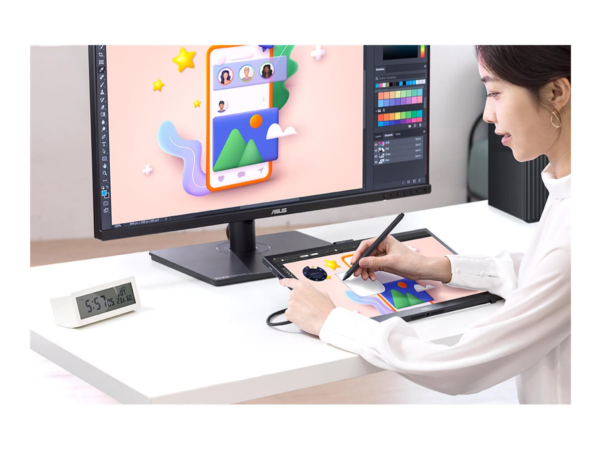 | Egenskaber | Delbillede, billedopdeling, HDCP, Protective Glass Panel, ASUS QuickFit Virtual Scale, Slim Design, Flicker Free-teknologi, auto-rotation, Color Temperature Selection, 6-Axis Color Adjustments, Low Blue Light-teknologi, Pantone Validated, CalMAN Verified, ProArt Preset, ProArt Palette, trefodssokkel, Delta E≤2 farvenøjagtighed, skrivestuft-berøringstilstand, letvægt |