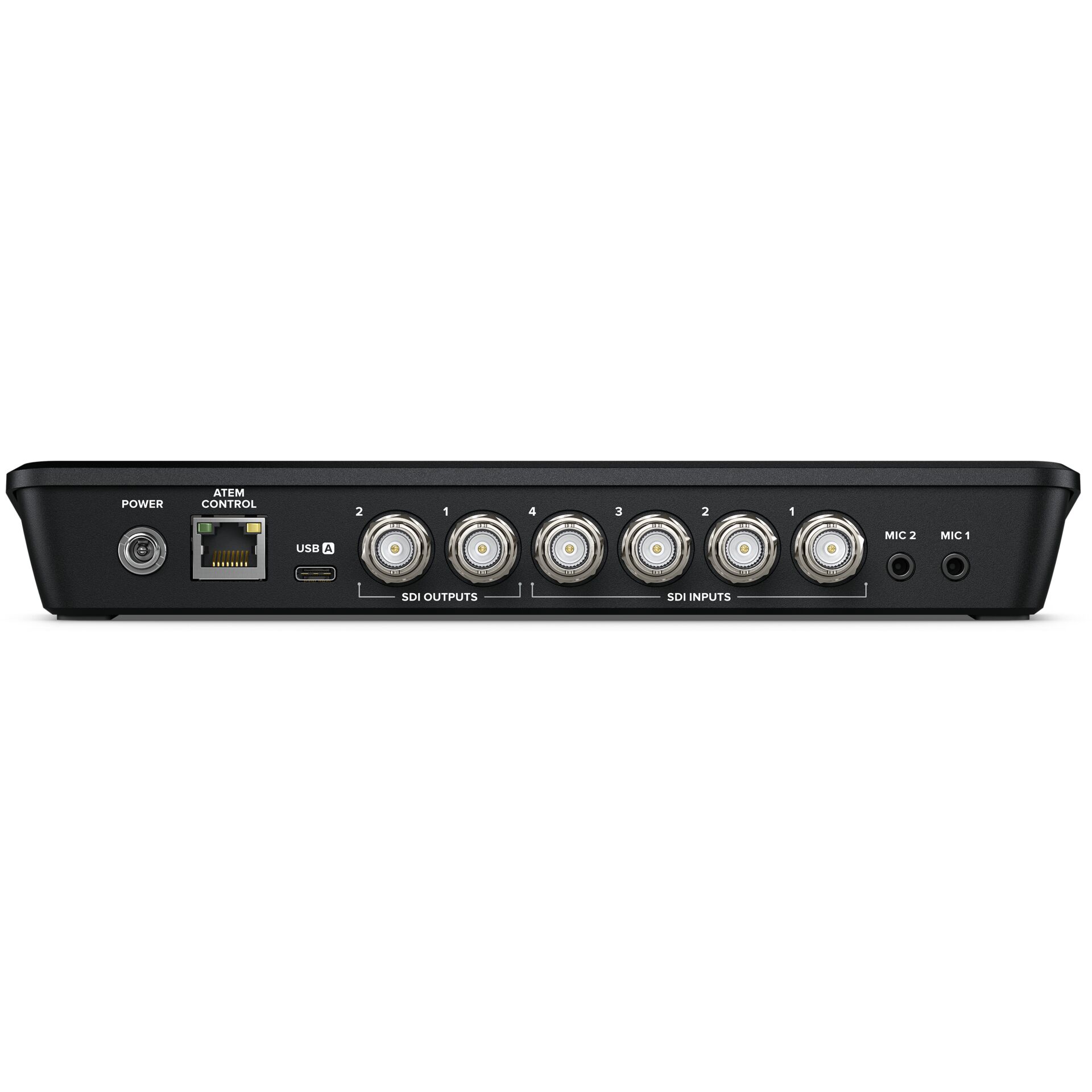 Blackmagic Design ATEM SDI. HD-type: Fuld HD, Videoopløsninger: 1280 x 720,1920 x 1080 pixel, Understøttede videotilstande: 720p, 1080i, 1080p. Ethernet LAN-datahastigheder: 10,100,1000 Mbit/s, Kabelteknologi: 10/100/1000Base-T(X). Strømkilde type: Vekselstrøm, Strømforbrug (maks.): 18 W. Produktfarve: Sort. Understøttede Windows-operativsystemer: Windows 10, Windows 11, Understøttede Mac-operativsystemer: Mac OS X 11.0 Big Sur, Mac OS X 12.0 Monterey