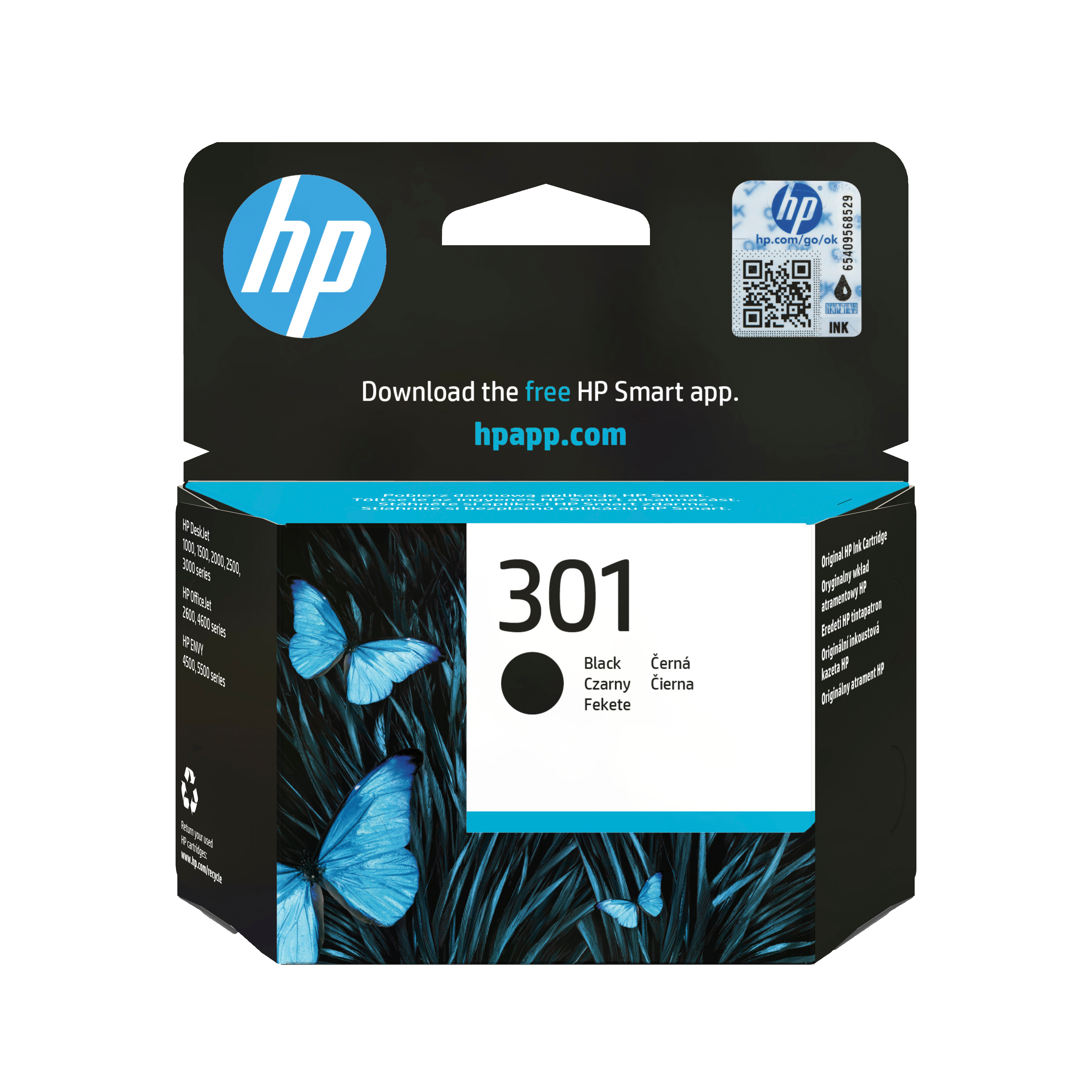 HP Original 301-blækpatron, sort. Patron kapacitet: Standard udbytte, Sort blæk type: Pigmentbaseret blæk, Sort blæk volumen: 3 ml, Forsyningstype: Enkelt pakke, Udskrivning af farver: Sort, Antal pr. pakke: 1 stk, Sort blæk sidekapacitet: 170 Sider