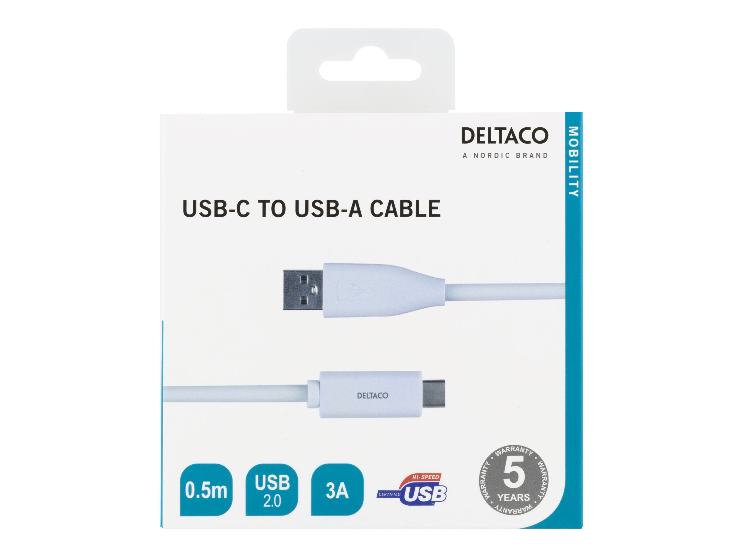 | Produktbeskrivelse | DELTACO USBC-1008M - USB Type-C kabel - USB-C til USB - 50 cm |