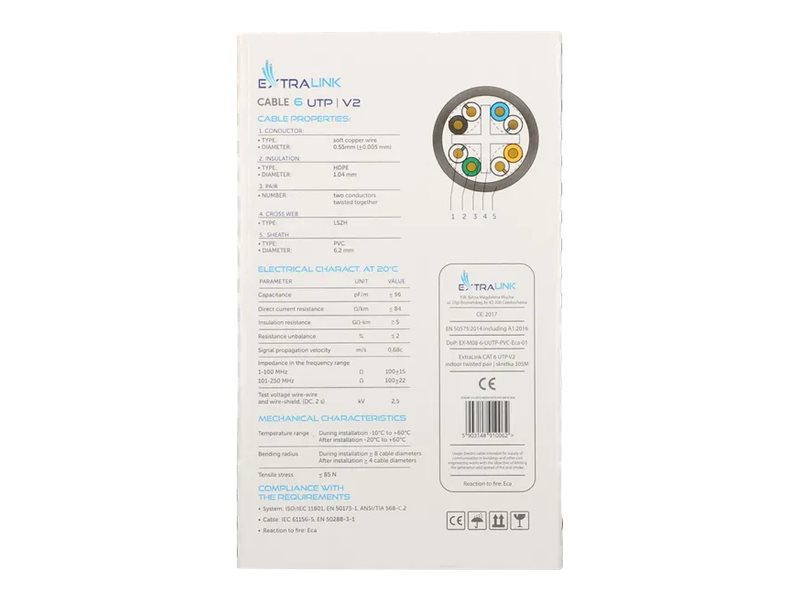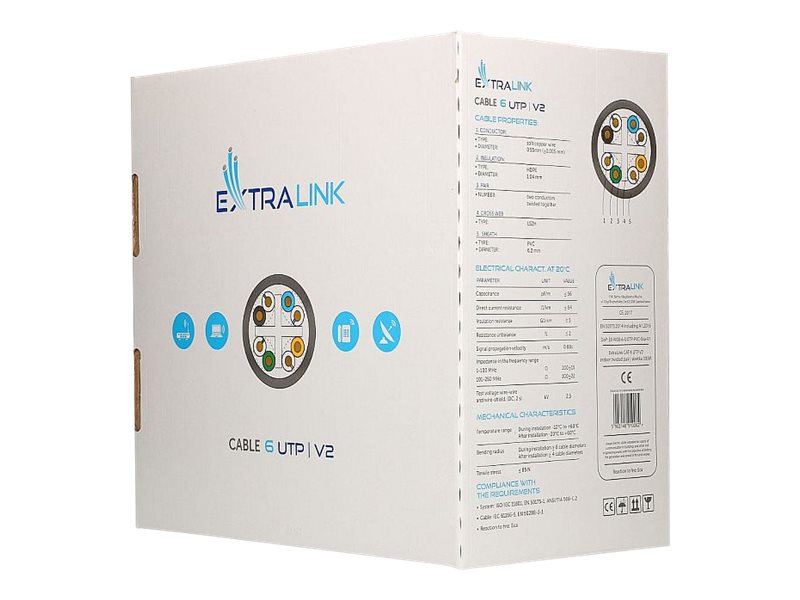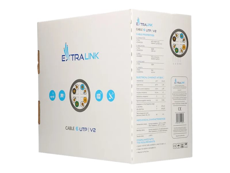 Extralink V2 CAT 6 Ikke afskærmet parsnoet (UTP) 305m Bulkkabel Grey