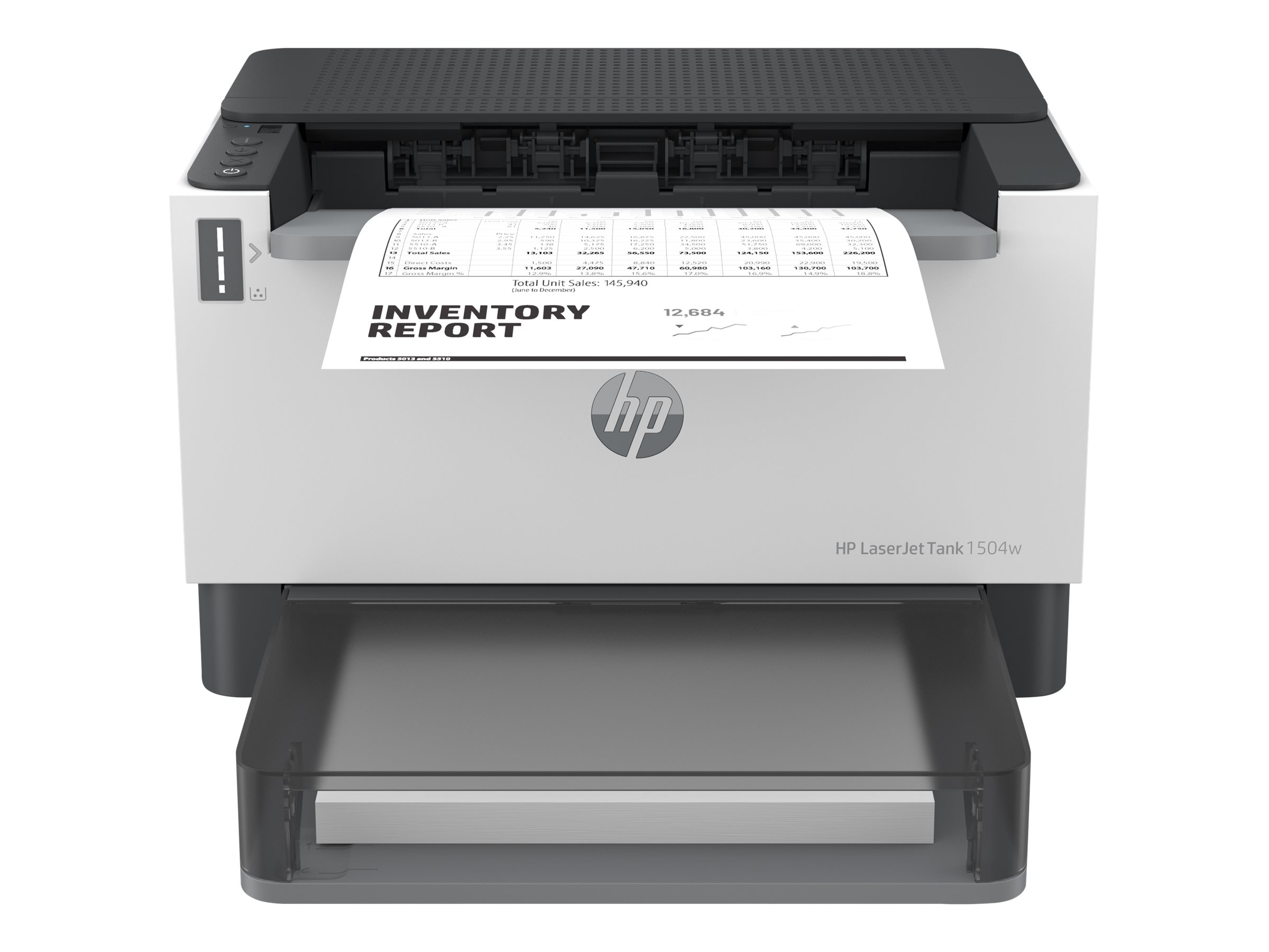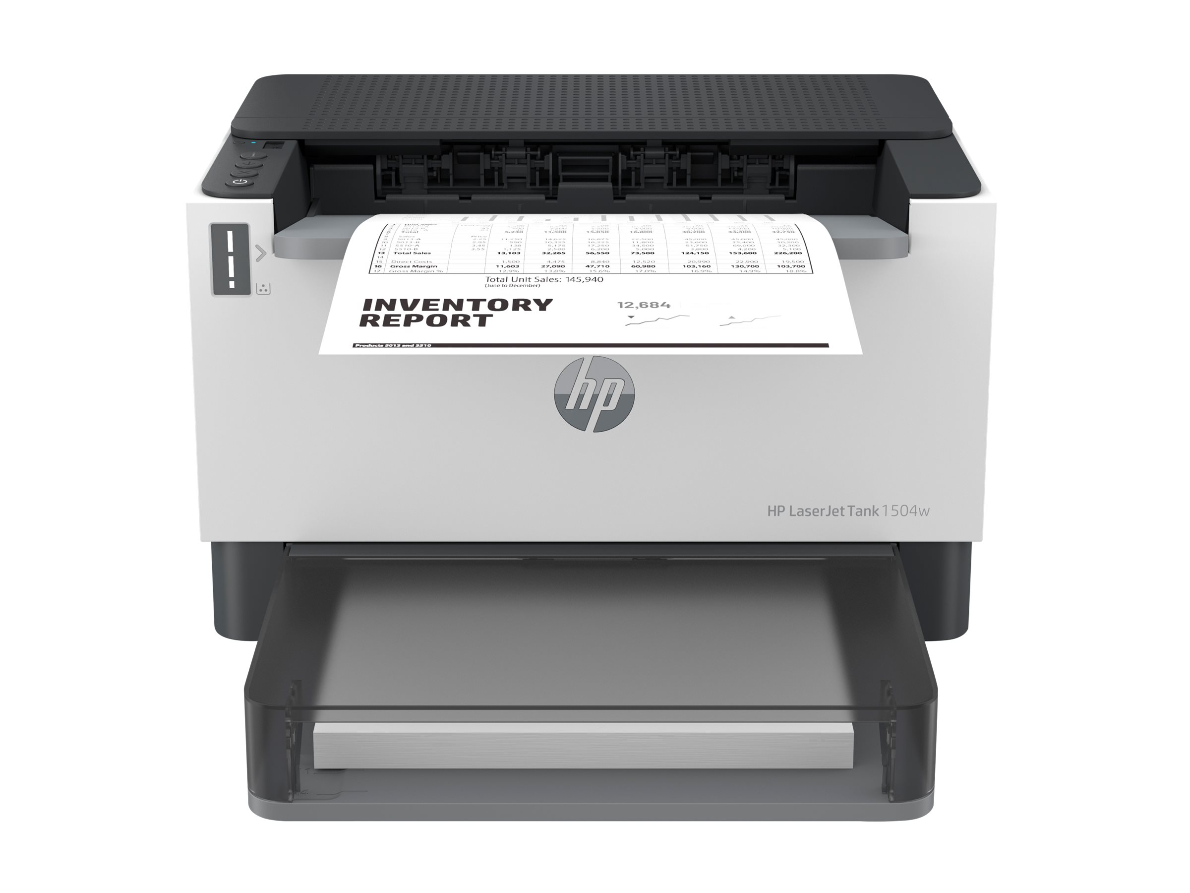 Oplev alle de erhvervsrettede funktioner og besparelse med HP LaserJet Tank 1504w-printer med op til 5.000 sider forudpåfyldt originalt HP-toner.