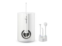 | Specielle Funktioner | Multispænding til brug i hele verden, vandtank (600 ml), aftagelig tank, opvaskemaskinsikker tank, 10 trykindstillinger, 647 kPa drift maksimalt tryk, ultralydsteknologi, børnetilstand |