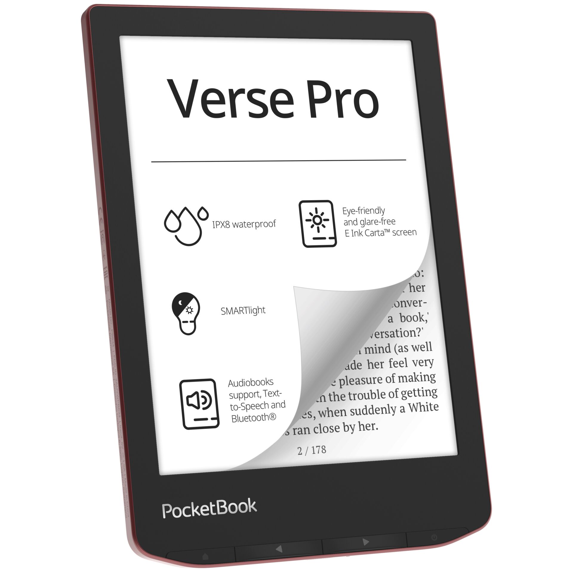 PocketBook Verse Pro - 16 GB - 6" monokrom (dobbeltlag) E Ink - touch screen - Bluetooth, Wi-Fi - passion red