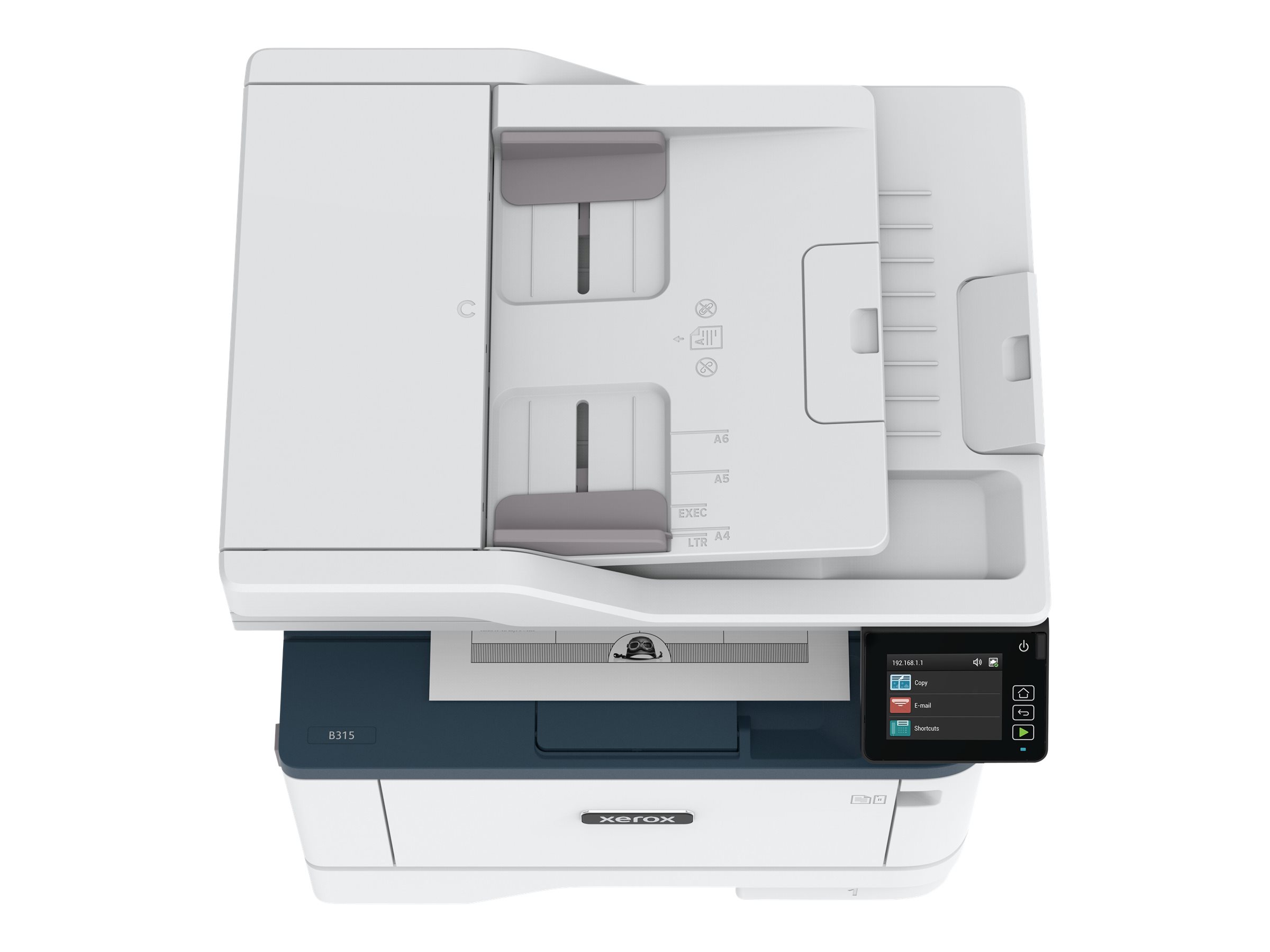 Den multifunktionelle Xerox B315-printer har indbygget wi-fi med Wi-Fi Direct og er nem at installere med Xerox Smart Start-software, så den er klar til at arbejde hårdt med det samme. Udskriv fra mobile enheder med understøttelse af Apple AirPrint, Mopria Print Service og Chromebook-udskrivning. Designet til små virksomheder, der har brug for at printe, kopiere og scanne. Med funktioner som automatisk tosidet udskrivning på papir med Letter- og Legal-format, automatisk dokumentfremfører med plads til 50 ark, standardkapacitet på 250 ark, en 1 GHz dual core-processor med 512 MB hukommelse og månedlig udskrivningsvolumen på op til 2.500 sider, er B315 en arbejdshest. Klar flere opgaver med Xerox Workflow Central, som gør det muligt at konvertere dokumenter til andre sprog, ændre håndskrevne noter til tekstdokumenter, der kan deles, oprette lydfiler fra papirdokumenter, som du kan lytte til på farten, automatisk redigere indhold og konvertere scanninger til Microsoft Office-programmer. Green World Alliance-program tilbyder problemfri genbrug af tonerpatroner.