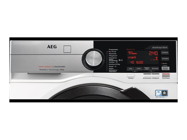 AEG ÖKOKombi 9000 L9WEF80690 - Vaske-/ tørremaskine - Niche - bredde: 60 cm - dybde: 63 cm - højde: 87 cm - frontbetjening - 9 kg - 1600 rpm - hvid med sort/sort-grå dør