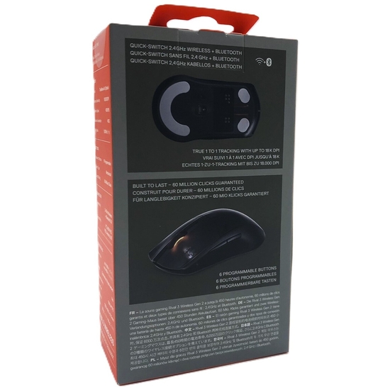 | Præstation | 40 G maksimum acceleration, forespørgselshastighed: 1000 Hz, 400 ips sporingshastighed, 60 millioner klik, realtids følsomheds-switching 100 - 18.000 cpi |