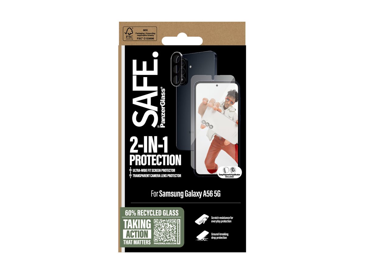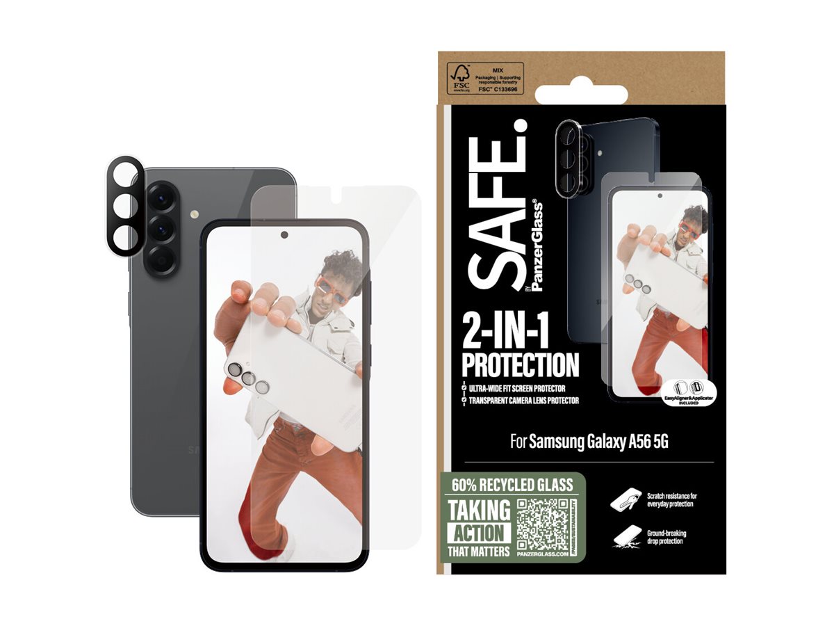 | Produktbeskrivelse | SAFE. by PanzerGlass - 2-i-1 Bundle - skærm / linse beskyttelsessæt for mobiltelefon - ultrabred pasform med EasyAligner |