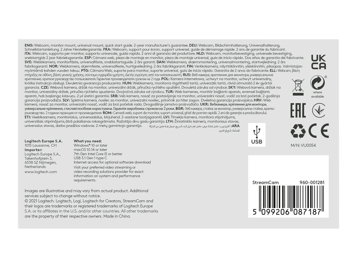 | Produktbeskrivelse | Logitech StreamCam - live streaming-kamera |