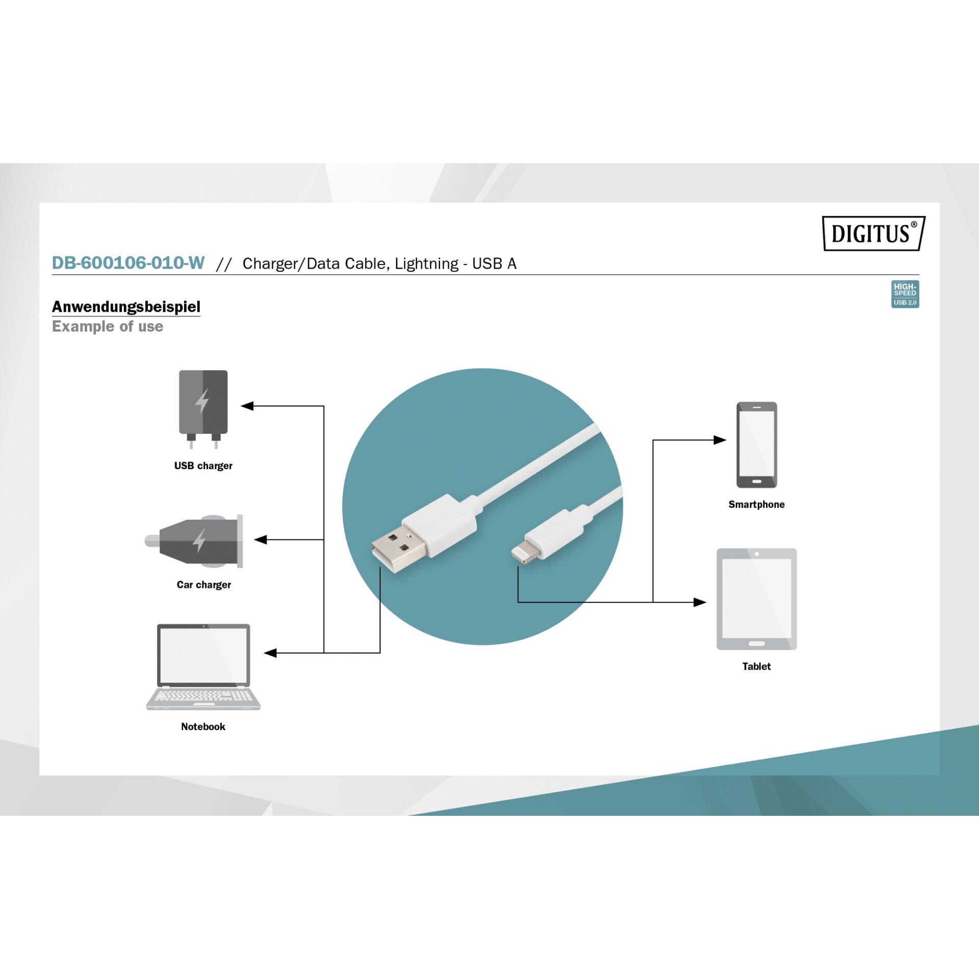 DIGITUS - Lightning-kabel - Lightning han til USB han - 1 m - dobbelt afskærmet - hvid - formet