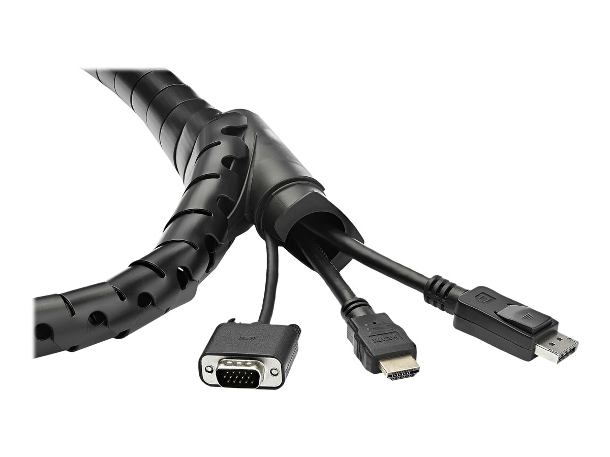 Here’s a fast, easy solution to organizing your cables. This spiral cable management sleeve wraps around your cables to tidy up your work area, while protecting your cords from abrasion. The expandable sleeve is conveniently sized: