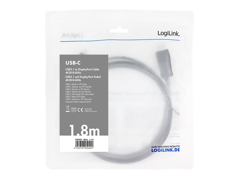 | Produktbeskrivelse | LogiLink - DisplayPort kabel - USB-C til DisplayPort - 1.8 m |