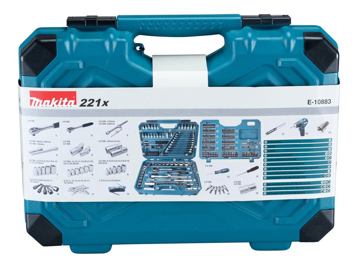| Produktbeskrivelse | Makita E-10883 - værktøjssæt - 221 stykker |