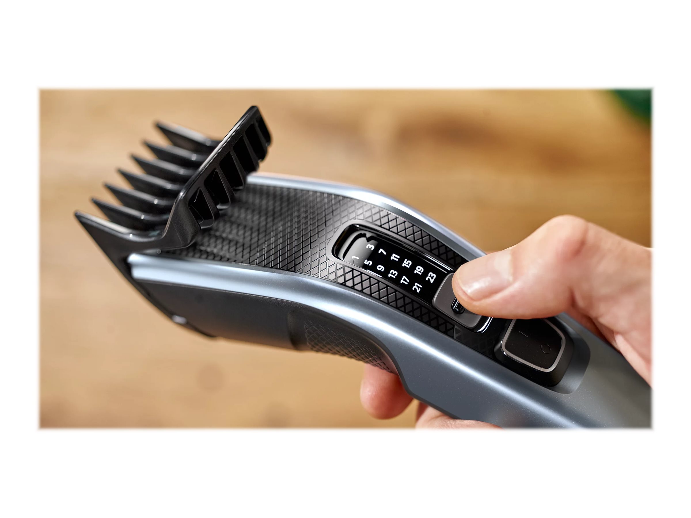 Med 13 længdeindstillinger fra 0,5 til 23 mm tilbyder denne hårklipper alsidighed. Uanset om du ønsker en tæt trimning eller at bevare længden, hjælper de medfølgende skæg- og stylingkamme dig med nemt at opnå det ønskede look.