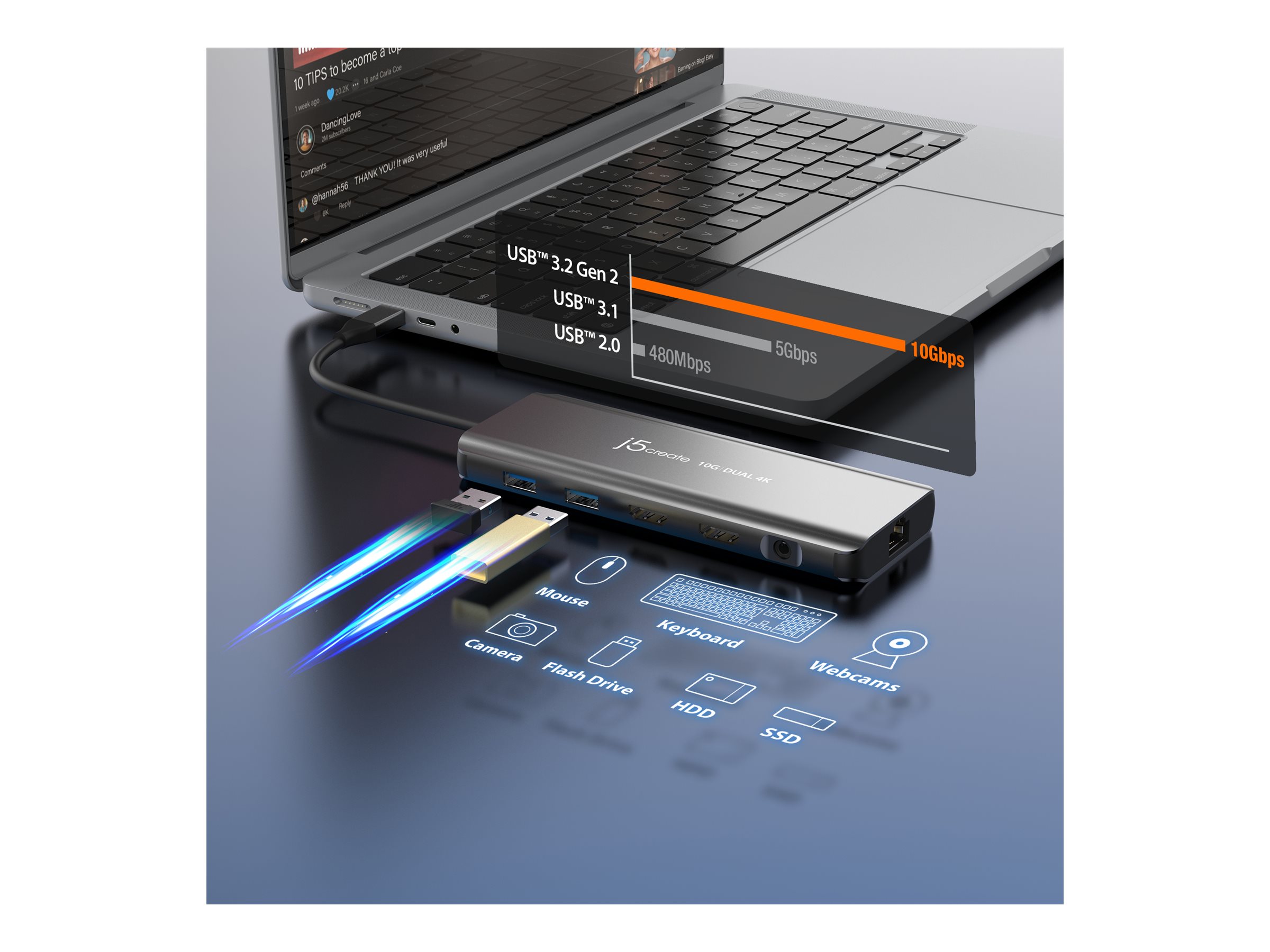| Produktbeskrivelse | j5create JCD398 - minidock - USB-C 3.2 Gen 2 - 2 x HDMI - 1GbE |