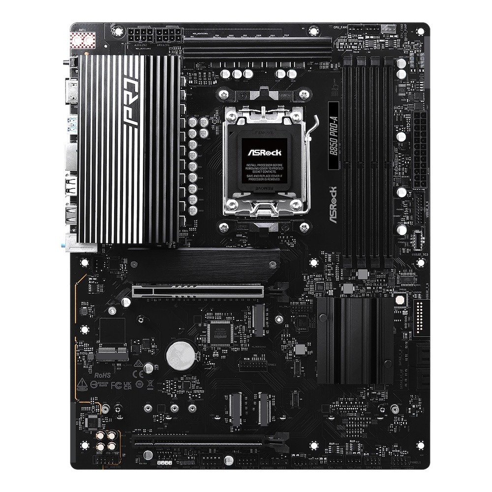 ASRock B850 Pro-A - ATX - Socket AM5 - 4x DDR5 slots - HDMI 2.1 - Type-C (DP-alt mode 1.4a) - Dragon RTL8125BG