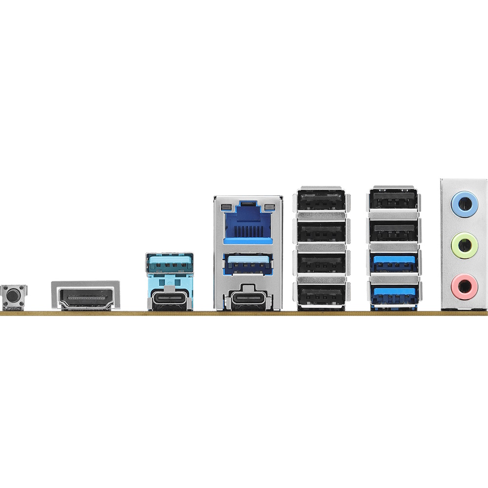 | Rear Panel I/O | 2x Antenna Mounting Points, 1x HDMI Port, 1x USB 3.2 Gen2 Type-C Port (10 Gb/s), 1x USB 3.2 Gen1 Type-C Port (DP-alt mode supports DP1.4a), 4x USB 3.2 Gen1 Type-A Ports, 6x USB 2.0 Ports, 1x RJ-45 LAN Port, 1x BIOS Flashback Button, HD Audio Jacks: Line in / Front Speaker / Microphone |