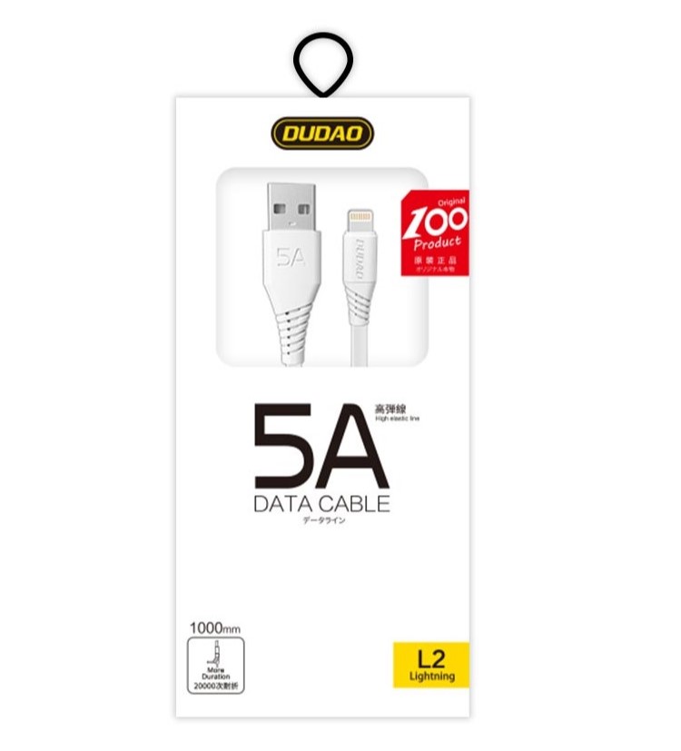 Dudao L2L USB-A to Lightning cable 2m hvid