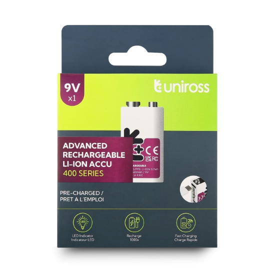 Uniross USB-C 9V/E-block - genopladelige - USB-C opladning - lithium polymor - 400mAh