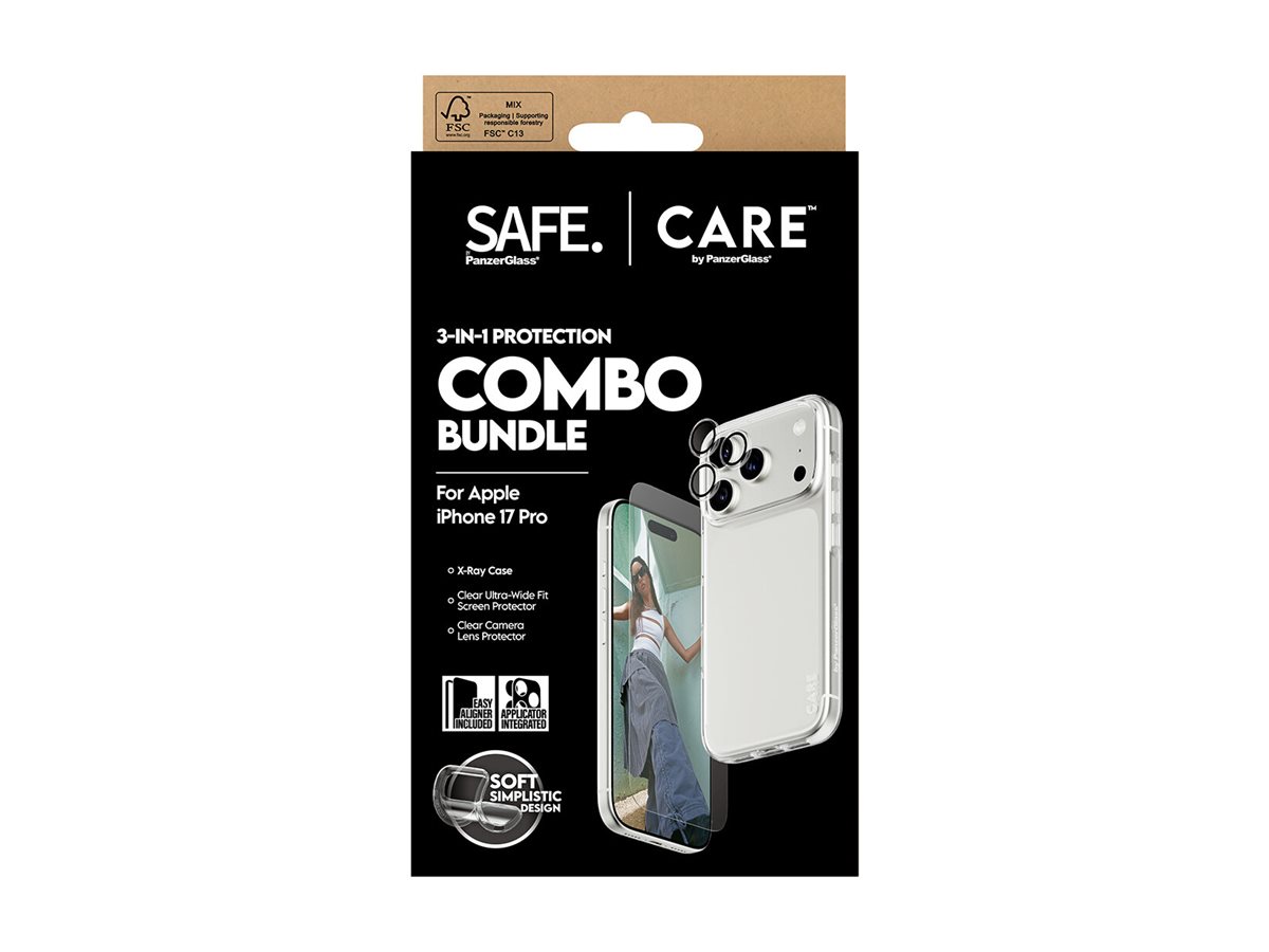 CARE by PanzerGlass - 3-in-1 Protection Combo Bundle - bagsidecover til mobiltelefon - polykarbonat, termoplastisk polyuretan (TPU) - klar - for Apple iPhone 17 Pro