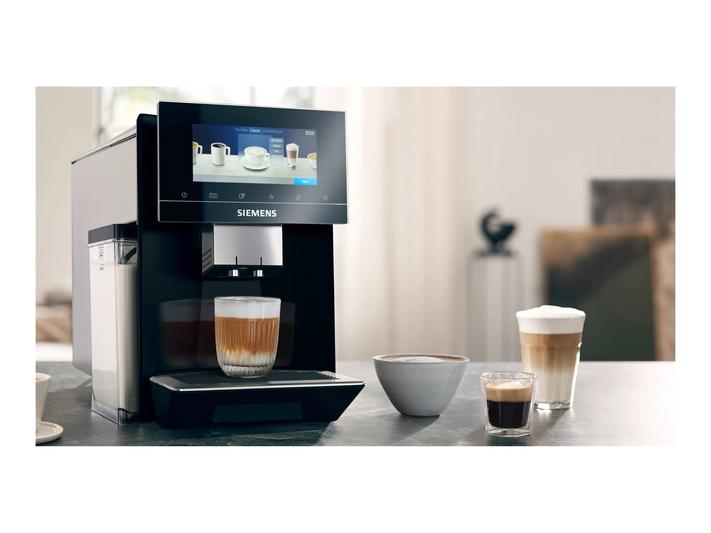 Produktbeskrivelse Siemens EQ.900 TQ905DF9 - automatisk kaffemaskine med mælkeskummer - 19 bar - sort/rustfrit stål