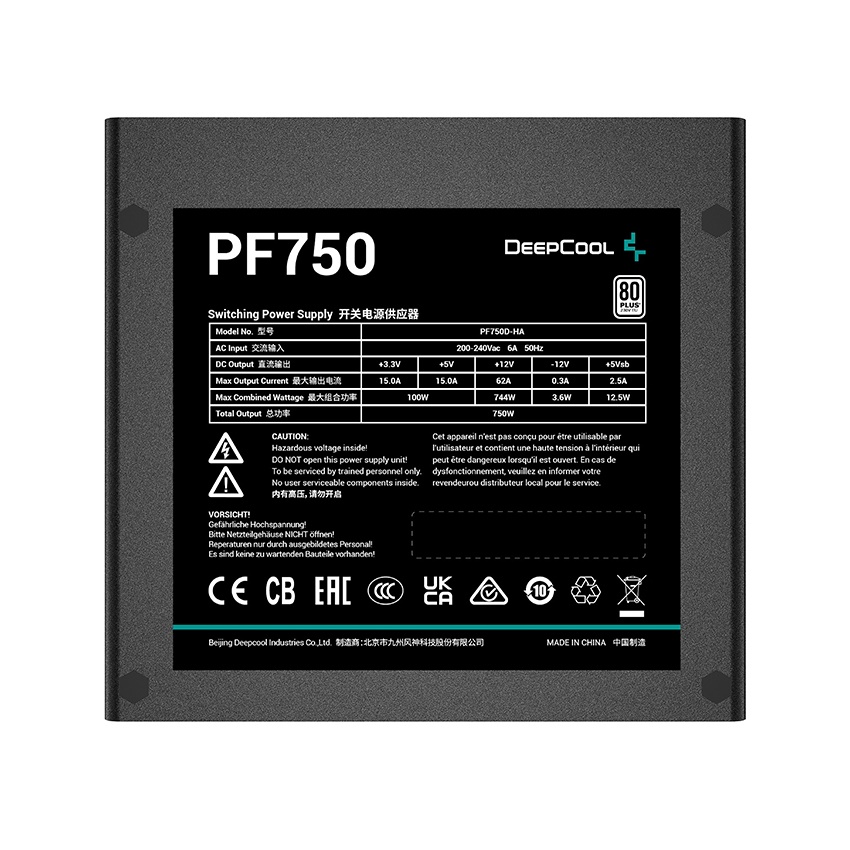 Deepcool PF750 leverer en samlet effekt på 750 W, hvilket sikrer stabil strømforsyning til forskellige komponenter, herunder CPU'er og GPU'er, hvilket gør den til et godt valg til både gaming- og arbejdsstationer.