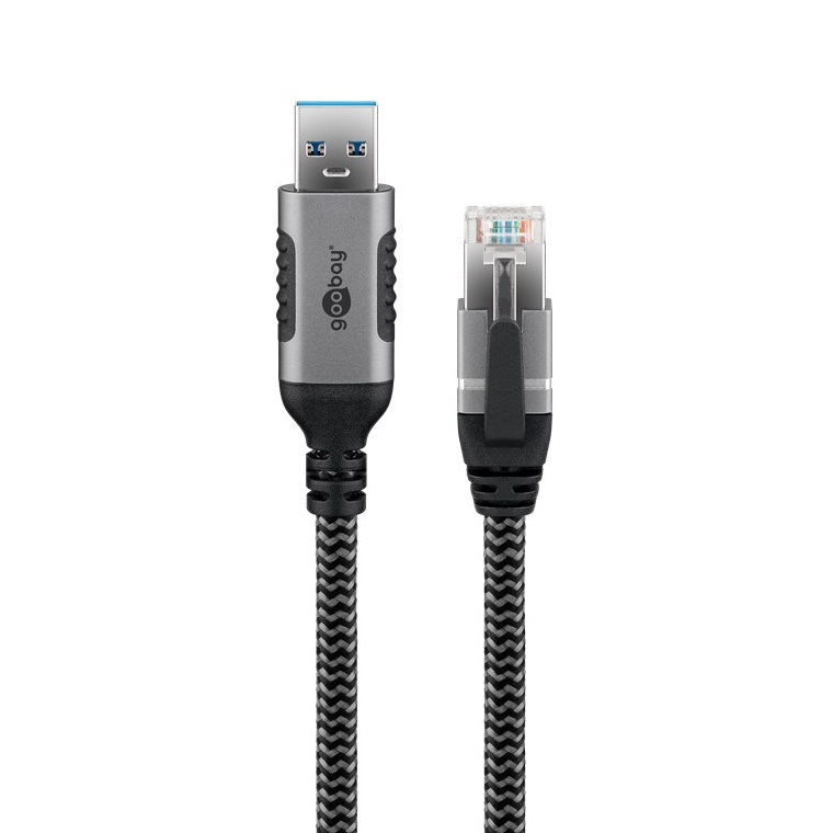 goobay - Netværkskabel - USB Type A (han) til RJ-45 (han) - 1.5 m - 6 mm - FTP - CAT 6 - USB 3.0 - braided - sort, sølv