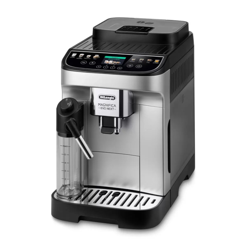 Delonghi Magnifica Evo Next ECAM310.80.SB. Produkttype: Espressomaskine, Kaffemaskine type: Fuld-auto, Kaffetype: Kaffebønner, Beholder til brygget kaffe: Kop, Indbygget kværn. Skærmtype: TFT. Strøm: 1450 W
