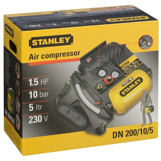 Stanley DN200/10/5 - Luftkompressor - 1100 W - 1.5 hk - oliefri - 180 l/min - 10 bar - 5 liter