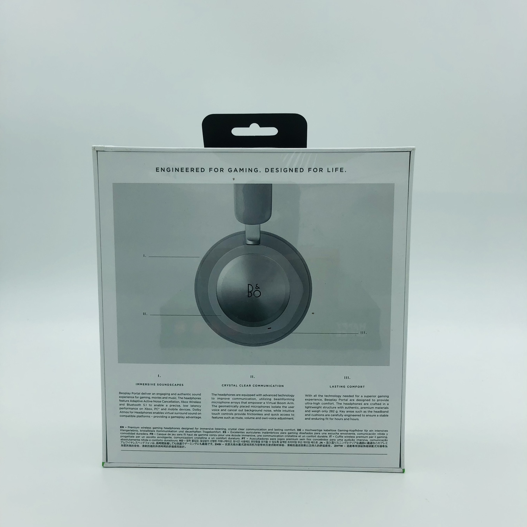 Beoplay Portals fyldige lydoplevelse giver dig alle de detaljer og nuancer, der gør dit spil levende. Ud over den finindstilling, der er udført af Bang & Olufsens dygtige lydingeniører, har Beoplay Portal Dolby Atmos til hovedtelefoner, hvilket skaber en enestående, medrivende rumlig lyd (til Xbox og Windows 10).