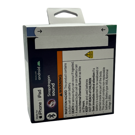 | Dimensioner & vægt detaljer | Ørespids: 2 cm x 2.44 cm x 3.12 cm / 77.1 g | Opladningsetui: 5.94 cm x 2.67 cm x 6.63 cm / 59.9 g |