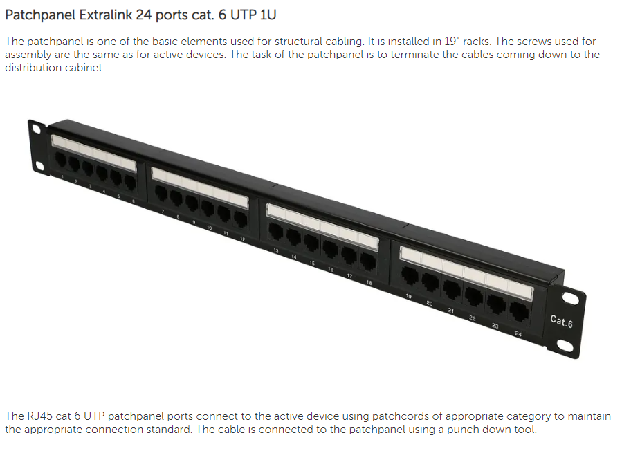 | Produktbeskrivelse | Extralink patch-panel - 1U - 19" |