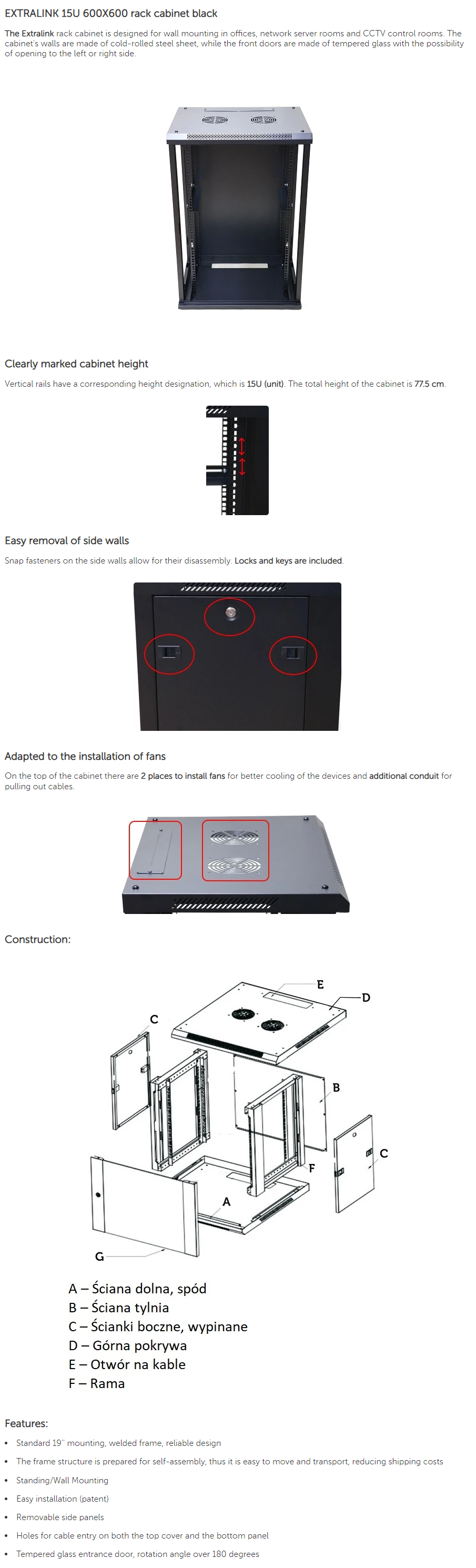 | Produktbeskrivelse | Extralink - rack - 15U |