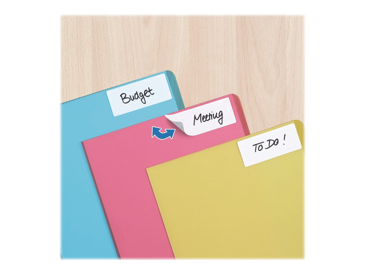 Universaletiketter til at markere, adressere eller organisere. Med Movables®-Technology: kan trækkes af uden at efterlade rester og kan klæbes på igen