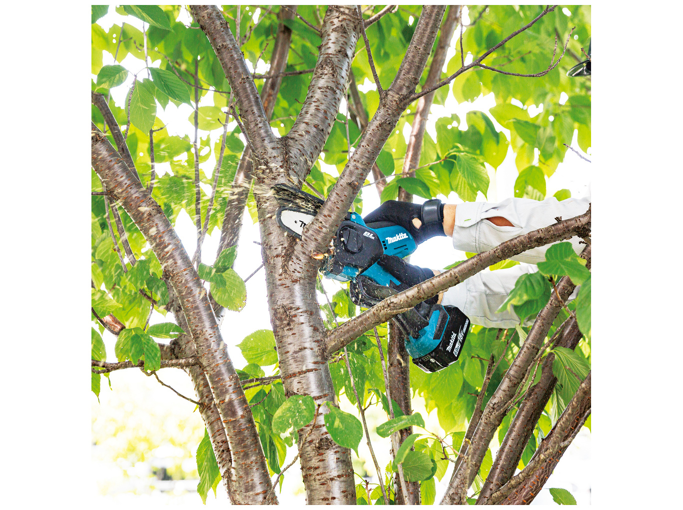 | Ekstra | Akku BL1830B Batteri - DC18RC hurtigoplader - Tandhjul .325" 80TXL - Savkæde 80TXL 10cm - Savstang 80TXL 10cm - Hylster 1913K4-9 - Savkædeolie 100 ml - Savkædeskærm - Filholder med rund fil |