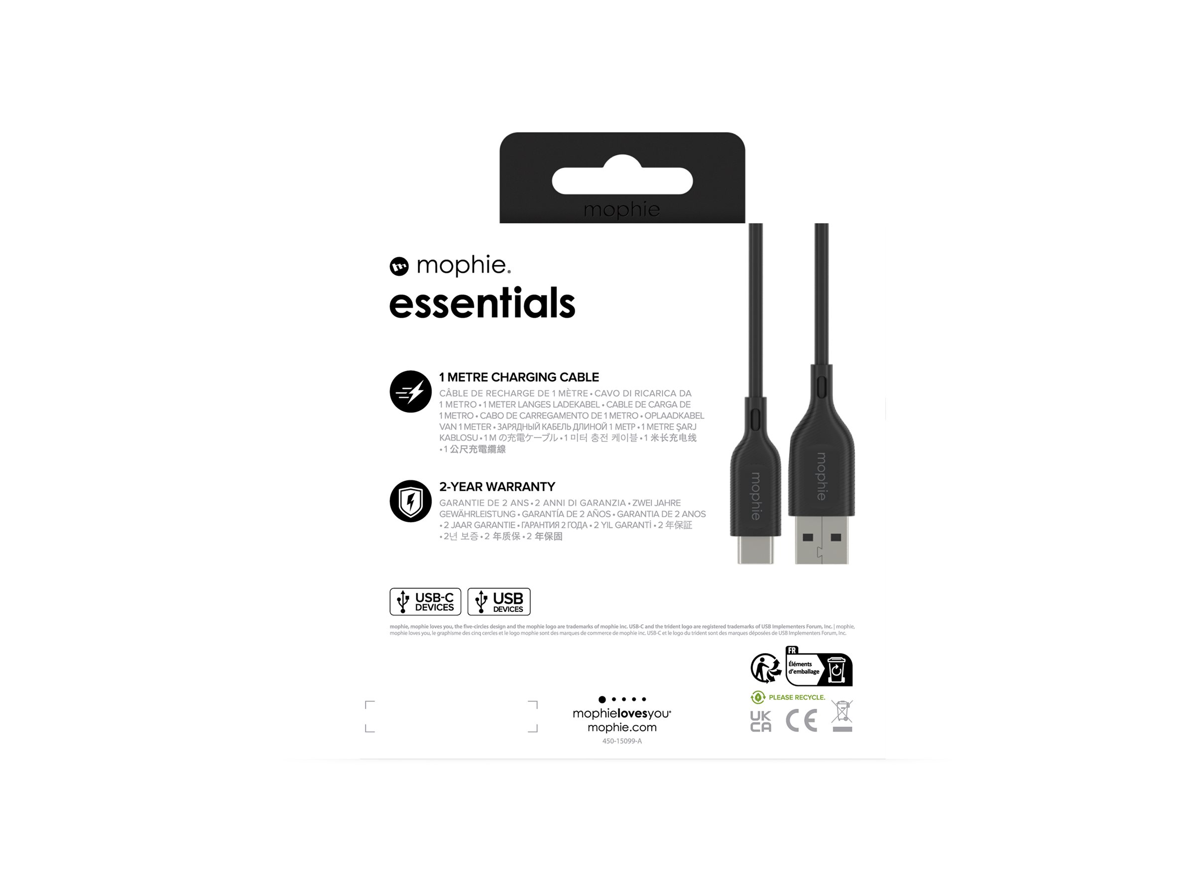 | Produktbeskrivelse | mophie essentials - USB Type-C kabel - USB til USB-C - 1 m |