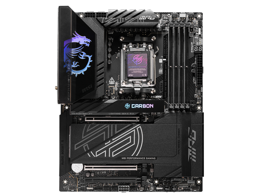 MSI MPG X870E Carbon WiFi - bundkort - ATX - Socket AM5 - AMD X870E Chipset - USB4, USB 3.2 Gen 1, USB 3.2 Gen 2x2 - 5, 2.5 Gigabit LAN - onboard grafik (CPU påkrævet) - HD Audio (8-kanaler) - Wi-Fi 7, Bluetooth 5.4