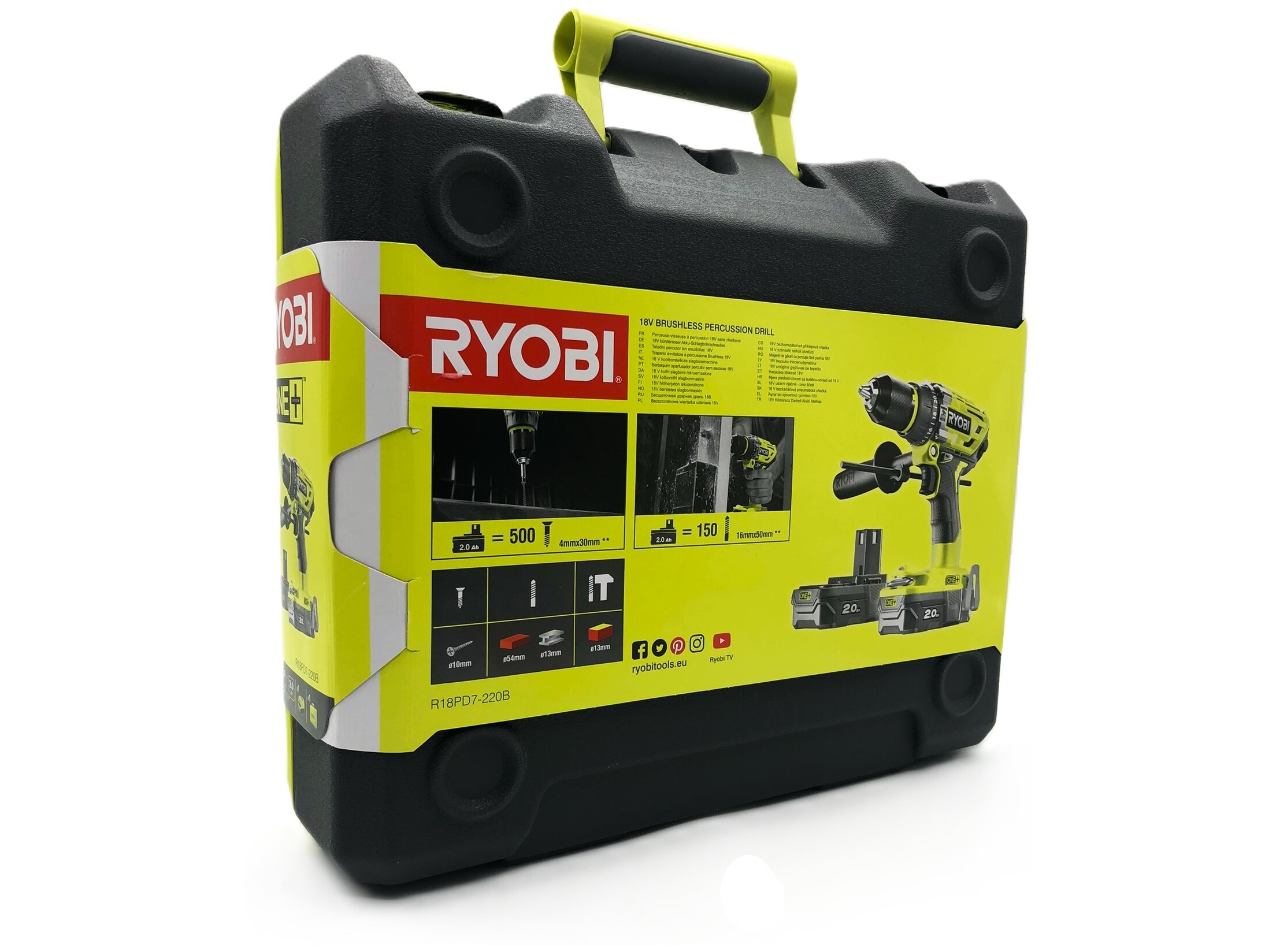 | Produktbeskrivelse | Ryobi One+ R18PD7-220B hammerbor/skruemaskine - ledningfri - 2-hastigheders - 2 batterier |