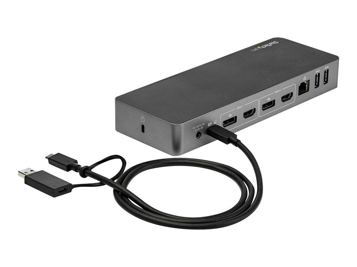| Produktbeskrivelse | StarTech.com USB-C & USB-A Dock, Hybrid Universal Laptop Docking Station with Dual Monitor Display 4K 60Hz HDMI & DisplayPort, 60W Power Delivery, Gigabit Ethernet, Windows, Mac Chrome - 4K USB Type-C Dock (DK30C2DPPDUE) - dockingstation - USB-C - 2 x HDMI, 2 x DP - 1GbE |