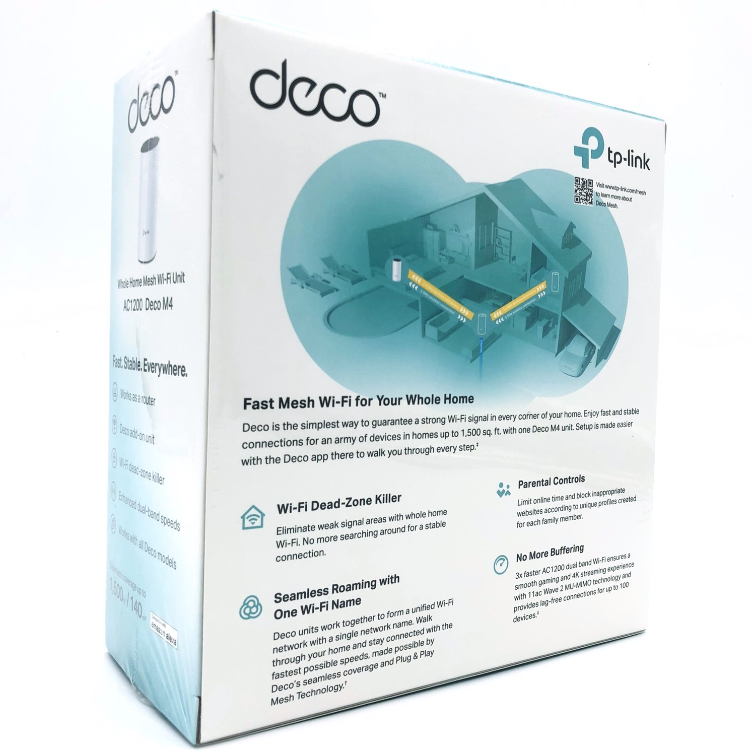 Deco M4 er den enkleste måde at garantere et stærkt Wi-Fi-signal i hvert hjørne af dit hjem på op til 2.800 kvadratmeter (2-pak). Trådløse forbindelser og valgfri Ethernet-backhaul arbejder sammen om at forbinde Deco-enheder, hvilket giver endnu hurtigere netværkshastigheder og virkelig sømløs dækning