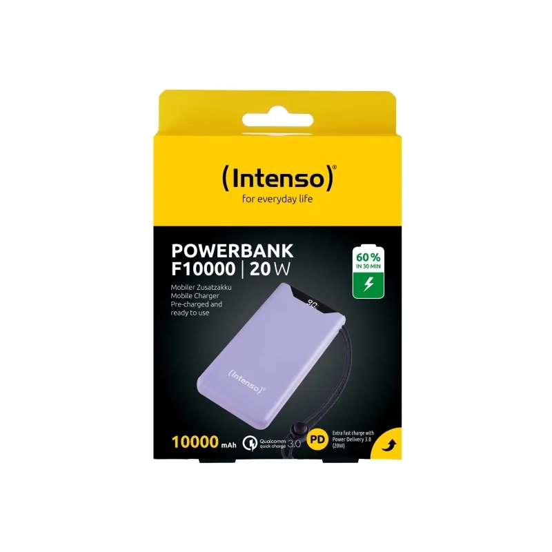 Intenso Powerbank F10000 - Powerbank - 10000 mAh - 20 Watt - QC 3.0 (24 pin USB-C) - USB-C, USB-A - Lilla