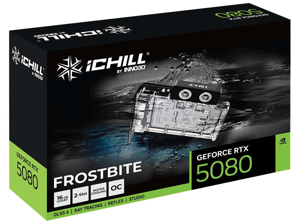 | Produktbeskrivelse | Inno3D iChiLL GeForce RTX 5080 FROSTBITE - grafikkort - GeForce RTX 5080 - 16 GB |