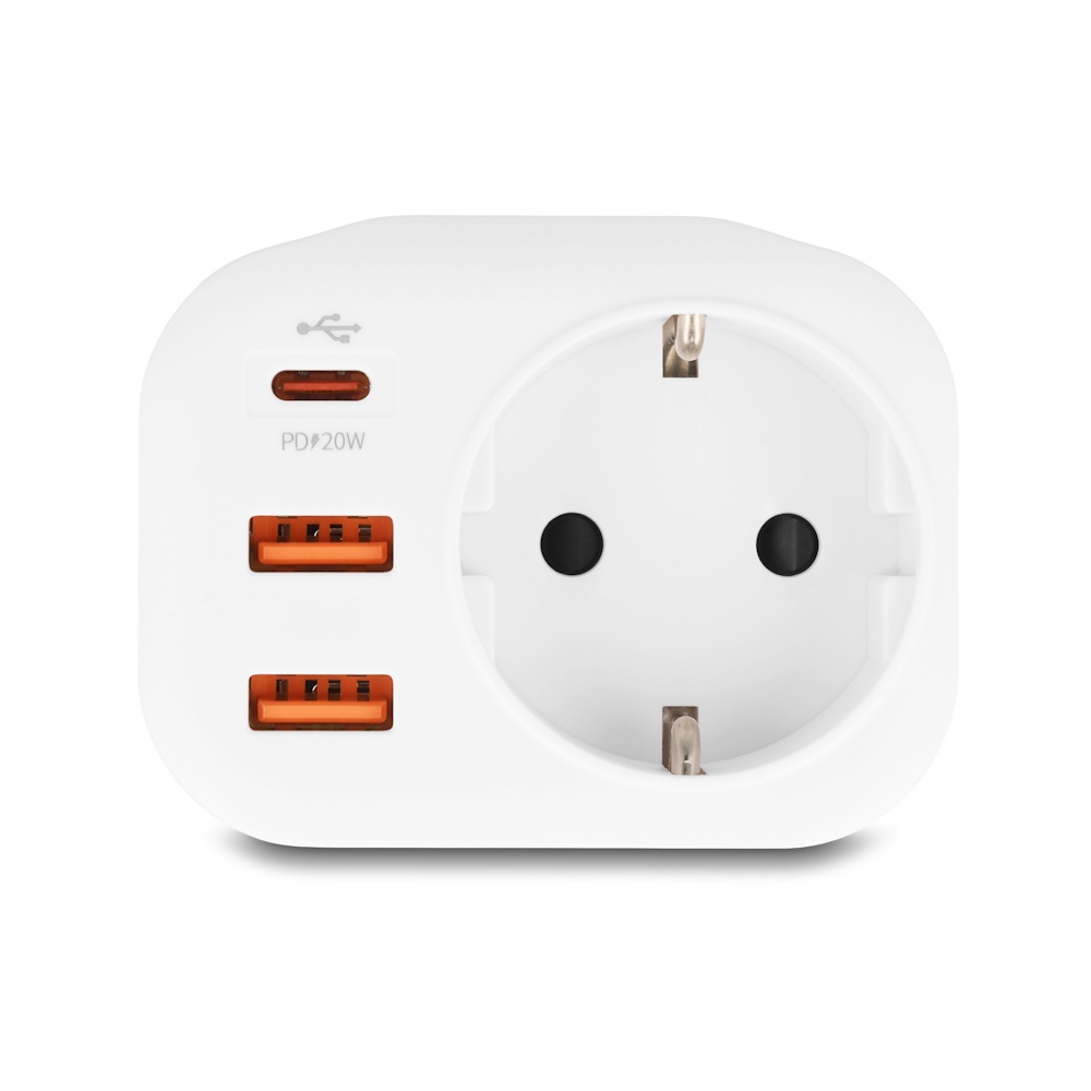 Delock Stikadapter med USB - 16.0 A / 250 V gennnemgang - 20W USB ladeeffekt - med børnesikring