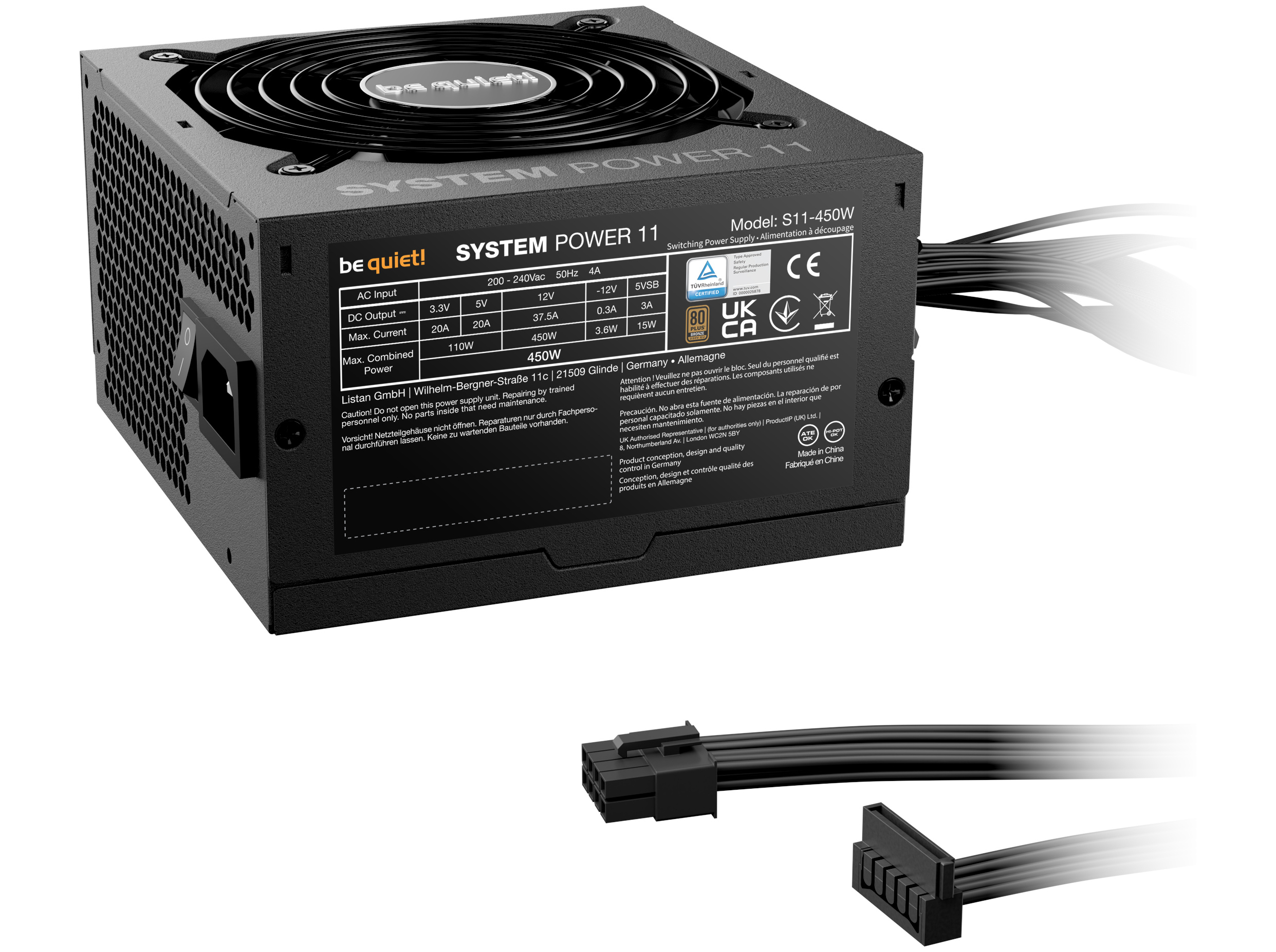 be quiet! System Power 11 450W - Strømforsyning (intern) - ATX12V 3.1/ EPS12V 2.92 - 80 PLUS Bronze - AC 100-240 V - 450 Watt - sort